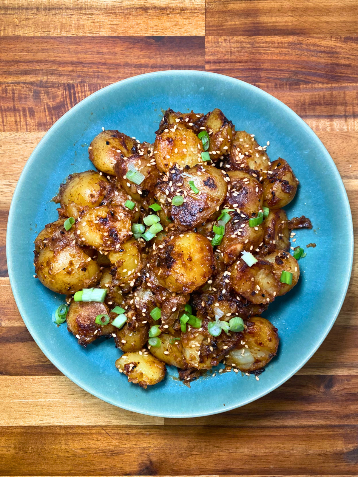 - Transfer the Honey Garlic Soy Potatoes to a large serving dish. Enjoy!