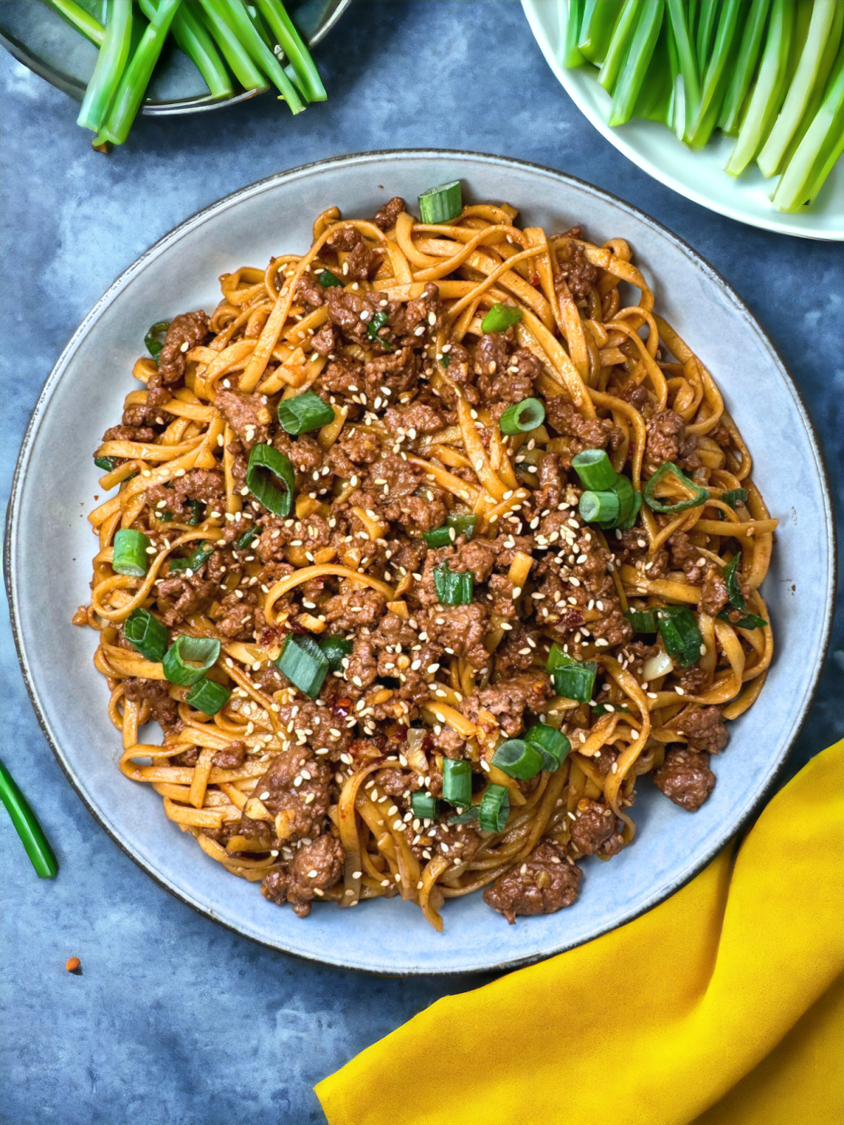 These Chili Oil Noodles are a mouthwatering dish featuring savory ground beef, tender wheat noodles, and a flavorful sauce infused with garlic and chili.